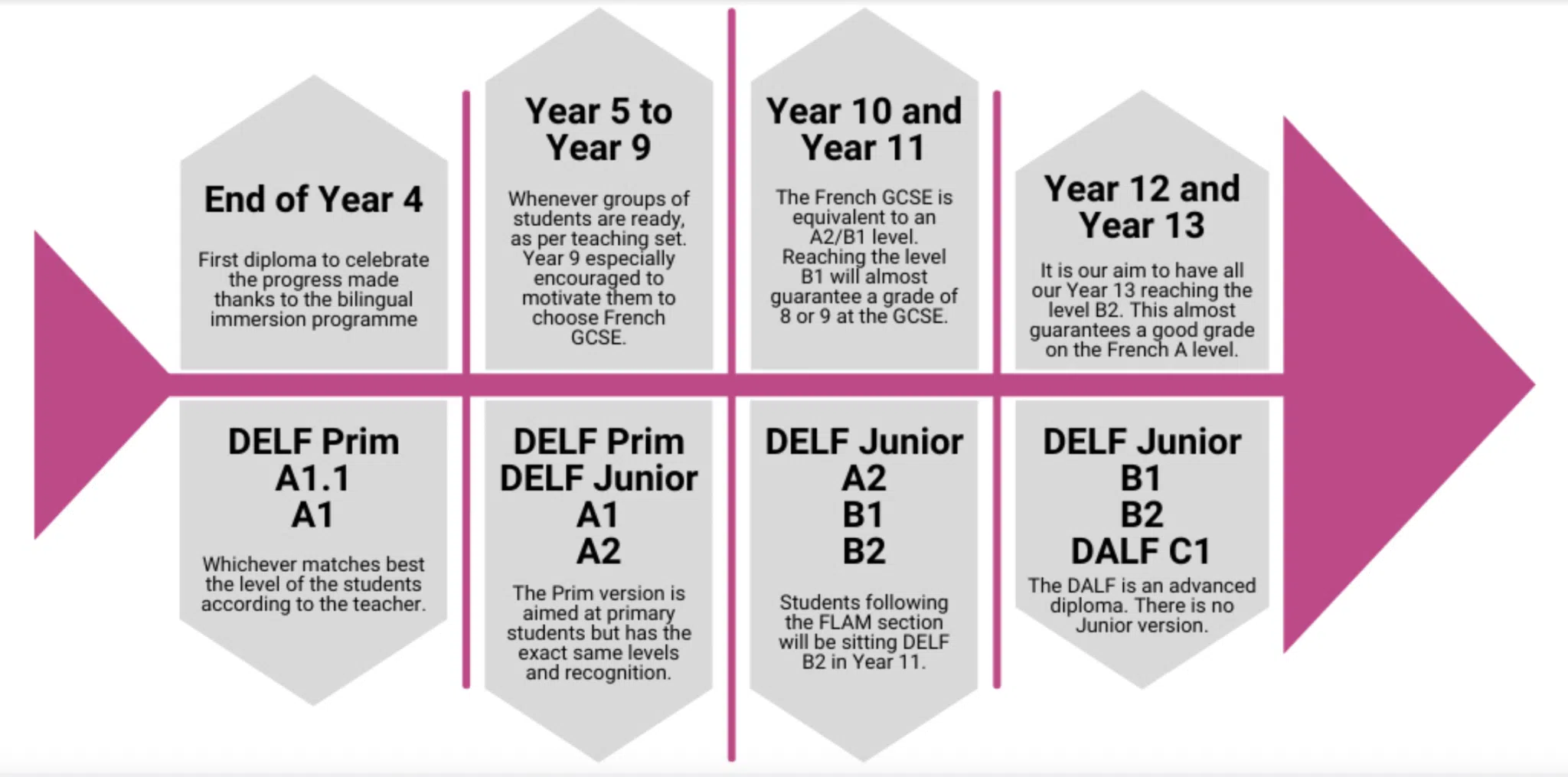 At Hampton Court House, the teaching of French is structured on the CEFR levels (Common European Framework of Reference for Languages), which were produced by the Council of Europe in 2001 to standardise language examinations. They are used internationally, and most language examinations around the world are now mapped using these.